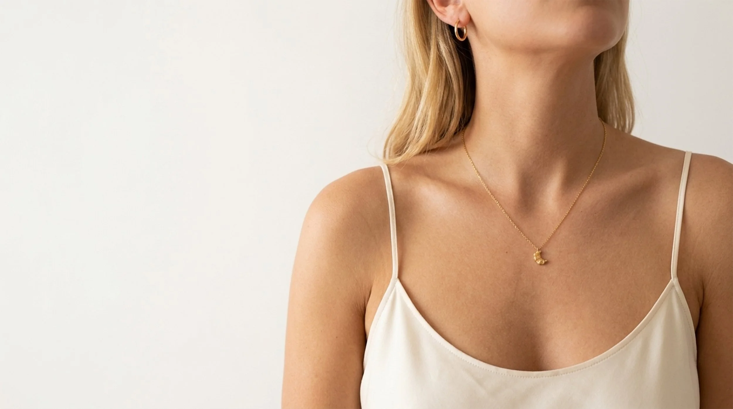 Vergoldete Kette mit Croissant-Anhänger für ein stilvolles und einzigartiges Accessoire.